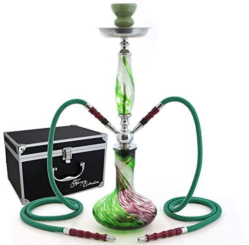 GStar 22" 2 Hose Hookah Complete Set with Optional Carrying Case - Swirl Art Glass Vase (Rasta Red w/case)