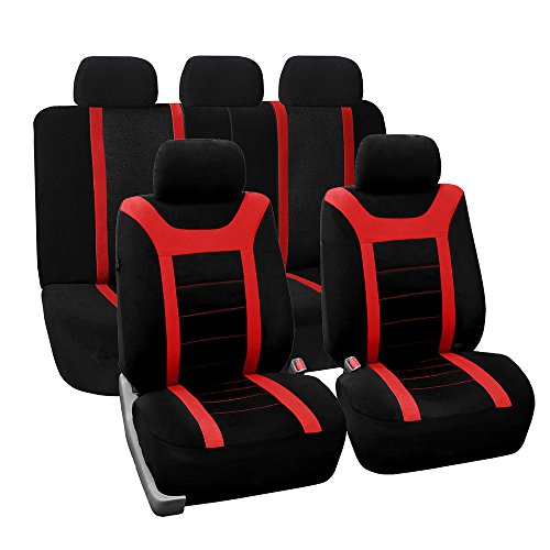 FH Group Universal Fit Full Set Sports Fabric Car Seat Cover with Airbag & Split Ready, (Red/Black) (FH-FB070115, Fit Most Car, Truck, SUV, or Van)