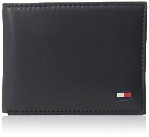 Tommy Hilfiger Men's Leather Wallet - Thin Sleek Casual Bifold with 6 Credit Card Pockets and Removable ID Window, Navy Dore