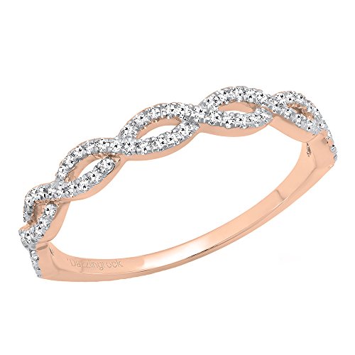 Dazzlingrock Collection 0.20 Carat (cttw) Round Diamond Ladies Swirl Anniversary Wedding Band Stackable Ring 1/5 CT, 10K Gold