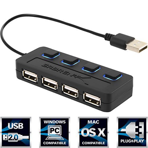 Sabrent 4-Port USB 2.0 Hub with Individual Power Switches and LEDs (HB-UMLS)