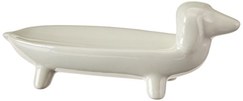 Creative Co-op White Ceramic Dog Ring Dish, 5.5" L x 1.75" W,