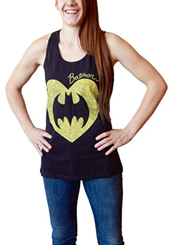 Batman Logo Heart Womens Juniors Tank Top (M) Black