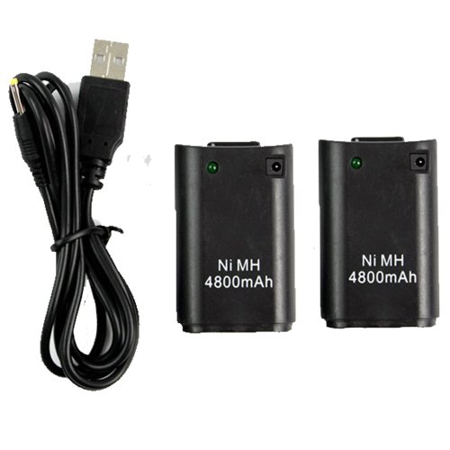 BESDATA Ultra High Capacity 2-pack 4800mAh Rechargeable Batteries & USB Charging Cable for Xbox 360 Wireless Controller - Perfect for Replacement - W0051 [Xbox 360]