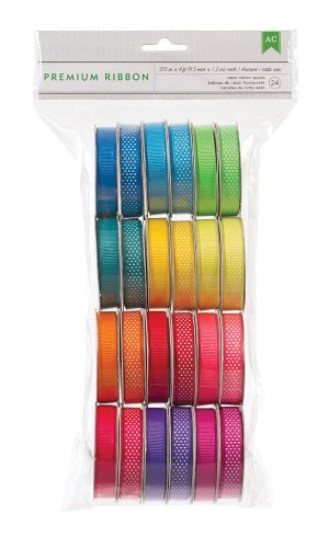 Extreme Value Neon Grosgrain Ribbon by American Crafts | 24 pack, various printed and woven patterns