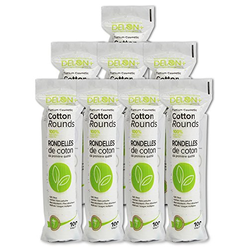 Delon Premium Facial Cleansing Cotton Rounds | Dermatologist Tested and Approved | 8x100 Count Stacks