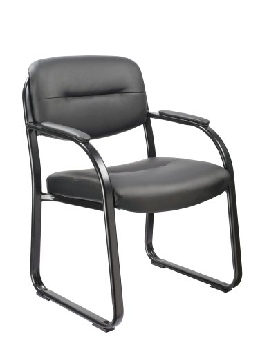 Office Factor Reception Room Executive Style Black Vinyl Guest Chair with Padded Seat, Back, Arms and Sled Base-Comfortable Seating for Visitors