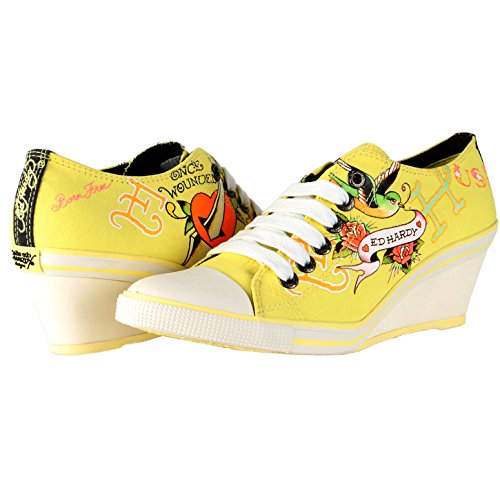 ED HARDY Bret Wedge Heel Shoe for Women - Yellow - 7