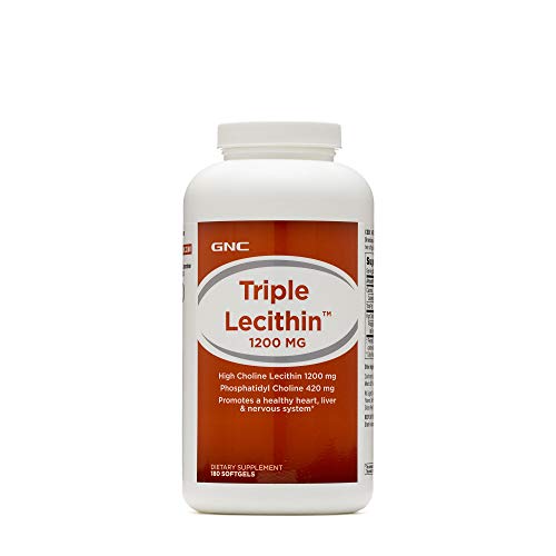 GNC Triple Lecithin 1200mg, 180 Softgels, Promotes a Healthy Heart, Liver and Nervous System