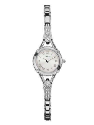 GUESS Petite Silver-Tone Crystal Bracelet Watch with Self-Adjustable Links. Color: Silver-Tone (Model: U0135L1)
