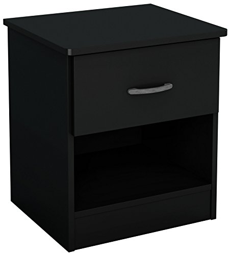 South Shore Libra 1-Drawer Nightstand, Pure Black with Metal Handle