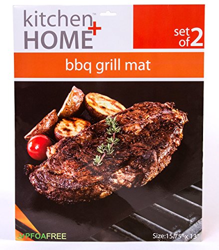 Kitchen + Home - BBQ Grill Mats -100% Non-Stick, Heavy Duty, Reusable, BPA and PFOA Free BBQ Grilling Accessories - 15.75 x 13 - (Set of 2)