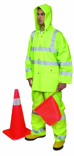 Mutual 14511 3 Piece PVC/High Visibility Polyester ANSI Class 3 Rain Suit, Large, Lime