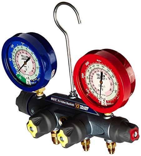 Yellow Jacket 46011 Brute II 4-Valve Manifold with Liquid Gauges, psi, R-22/410A