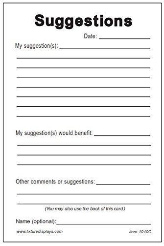 FixtureDisplays 1 Pack of 25 Suggestion Cards Suggestion Box Cards 4x6" Continuous Improvement Cards 1040C
