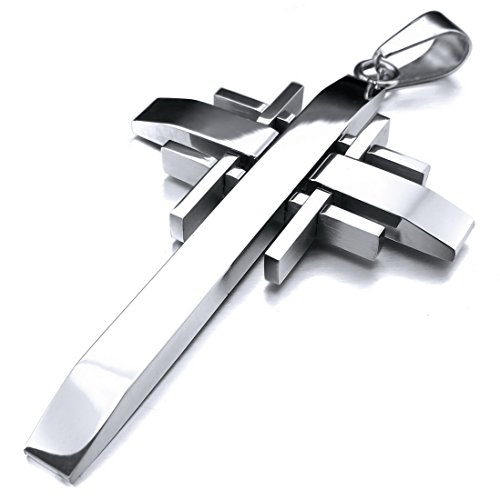 INBLUE Men's Stainless Steel Pendant Necklace Silver Tone Cross -with 23 Inch Chain