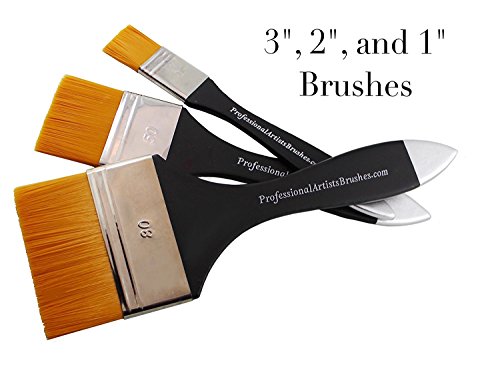 Flat Wash Brush Set for Acrylics, Watercolor and Oils. Paint Large Areas Quickly and Smoothly With Liquid Paint. Upgrade of Design and Quality in 2016. Will Not Shed Bristles