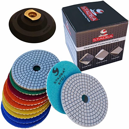 Diamond Polishing Pads 4" inch Wet/Dry Set of 11+1 Backer Pad Best Value Granite Concrete