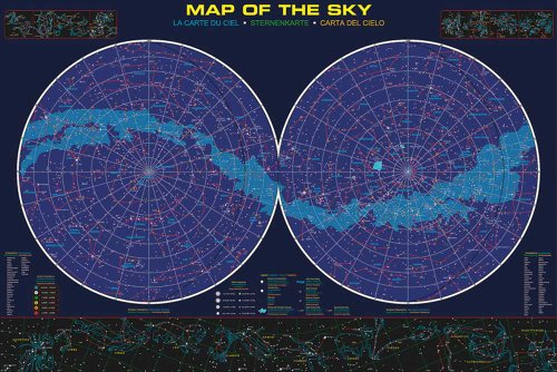 Educational Poster Map of the Sky with Accessory Item m. 2 Leisten, schwarz