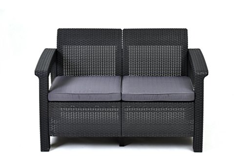 Keter Corfu Love Seat All Weather Outdoor Patio Garden Furniture w/ Cushions, Charcoal