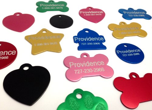 Anodized Pet ID Tags - Choose from Bone, Round, Heart, Hydrant, Paw, or Star Shapes - 9 Color Choices Available