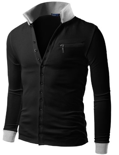 Doublju Mens Jersey Cardigan with Contrast Detail BLACK, Tag XX-Large, US X-Large