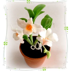 Dendrobium Orchid W Pot Miniature Clay Flower Plant Garden Wedding Gift Fa1