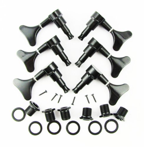 IKN 3L3R Bass Tuning Pegs 3+3 Sealed Machine Heads Keys Black for 6 Strings Precision Bass/Jazz Bass