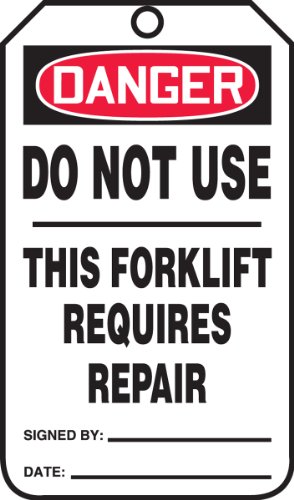 Accuform Signs TRS327CTP Forklift Status Tag, Legend"Danger DO NOT USE - This Forklift Requires Repair", 5.75" Length x 3.25" Width x 0.010" Thickness, PF-Cardstock, Red/Black on White (Pack of 25)