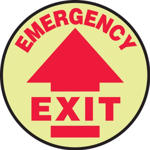 Accuform MFS761 Slip-Gard Lumi-Glow Flex Adhesive Vinyl Round Floor Sign, Legend"Emergency EXIT (Arrow)", 17" Diameter, Red on Glow