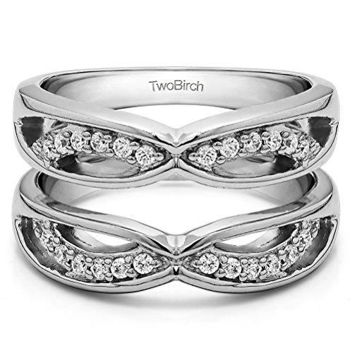 TwoBirch 0.24 Ct. Criss Cross Anniversary Jacket Ring Guard in Sterling Silver with Cubic Zirconia (Size 5.25)