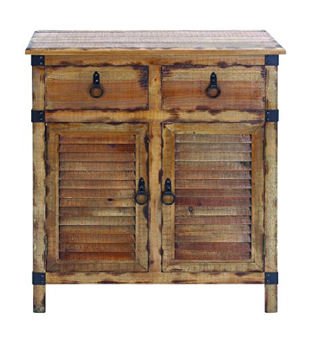 Benzara Wood Cabinet with Shutter Type Accents