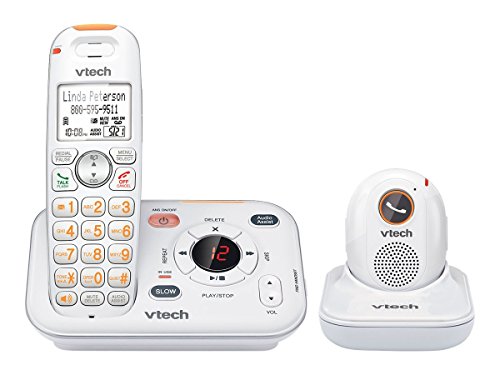 VTech SN6187 CareLine Expandable Cordless Phone with Answering System and Accessory Portable Pendant, White