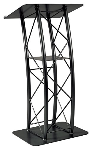 Displays2go Black Aluminum and Steel Truss Lectern with Curved Design and Built-In Shelf, 47-Inch Tall, Textured Finish (LCTTACBK)