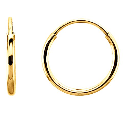14K Gold Thin Continuous Endless Hoop Earrings, 10 - 24mm (1mm Tube) (10mm - Yellow Gold)