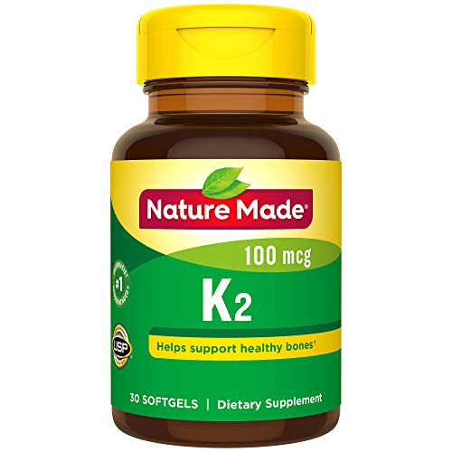 Nature Made Vitamin K2 100 mcg Softgels, 30 Count for Bone Health (Packaging May Vary)