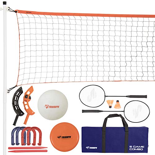 Triumph Five Outdoor Games Combo Set Includes Badminton, Volleyball, Horseshoes, Disc Golf, and Jai Alai