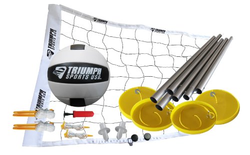 Triumph Beach Volleyball Set Includes Net, Poles, Official Size Volleyball, Inflating Pump with Needle, and More