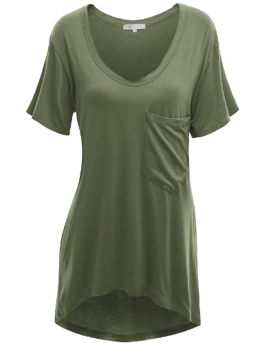 Doublju Deep V-Neck Oversized T-Shirt Dress With Chest Pocket For Women With Plus Size KHAKI X LARGE