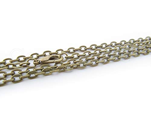 CleverDelights 20 Pack 24" Vintage Style Necklaces - Antique Bronze Color - 3x4mm Flat Oval Links - 24 Inch Cable Chains