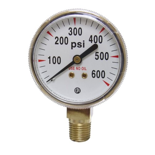 Uniweld G8S Gauge with 0-600 PSI and 1/4-Inch NPT Bottom Mount Gold Steel Case, 2-Inch