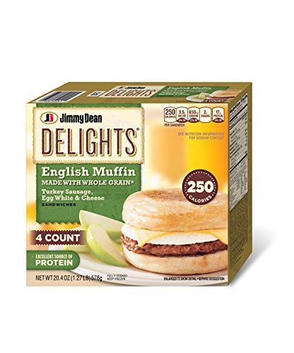 Jimmy Dean, Delights English Muffin, Whole Grain Turkey Sausage, Egg White and Cheese, 4 Count