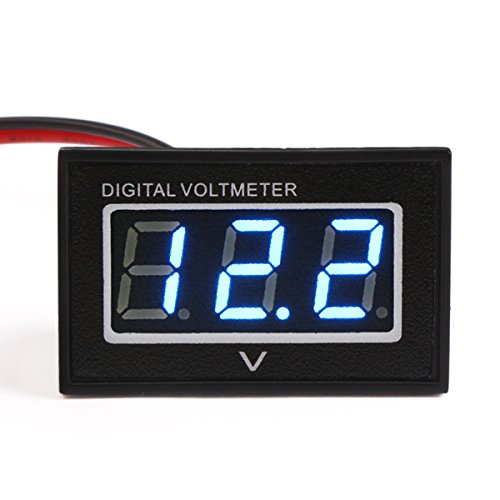 DROK Waterproof LED Digital Voltmeter 0.40" DC 3-30V Voltage Meter Gauge Panel 12V/24V Volt Tester Power Monitor with 2 Wires Blue Digital Display