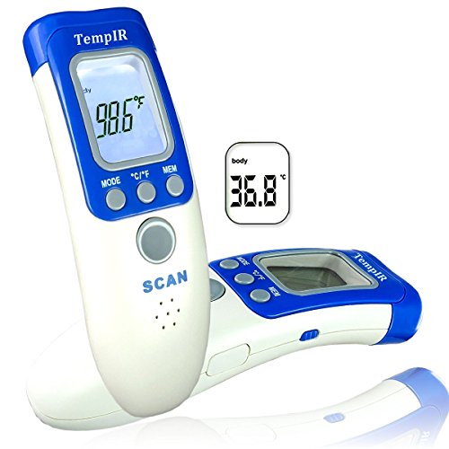 TempIR Temporal Body Temperature Thermometer, Infrared for Baby Adult Child, FDA & CE Approved, Non Contact Clinical for Forehead, Indoor or Surface. Memory. Fever Alarm