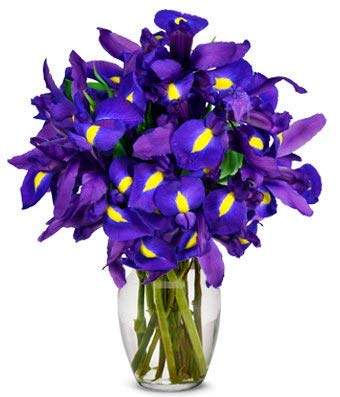 Flowers - Stunning Blue Iris - 10 Stems (Free Vase Included)