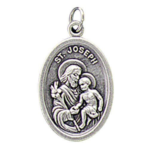 Saint Joseph with Child Jesus Silver Oxidized Medal Blessed by His Holiness
