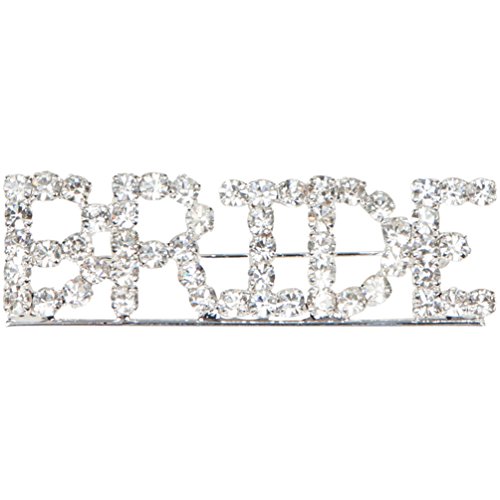 Heirloom Finds Block Letter Bride Wedding Brooch Rhinestone Crystal on Silver Tone Pin