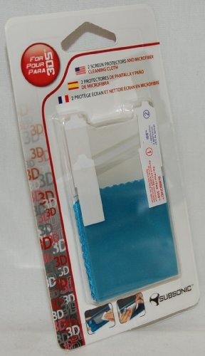2 X NEW Subsonic Nintendo 3ds Screen Protectors + Cloth Pair Retail Packaging Us