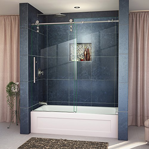 DreamLine Enigma-Z 55-59 in. W x 62 in. H Fully Frameless Sliding Tub Door in Brushed Stainless Steel, SHDR-6260620-07