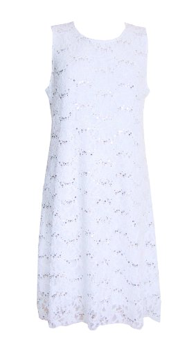DangerousFX White - Sequined Lace Evening Cocktail Dress in Size 18